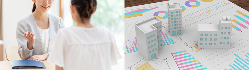 弊社では、周辺相場や最新のマーケット動向、物件に適した業種ごとの家賃相場 など多角的な情報をもとに分析を行い、オーナー様とご相談しながら最適な条件をご提案いたします。